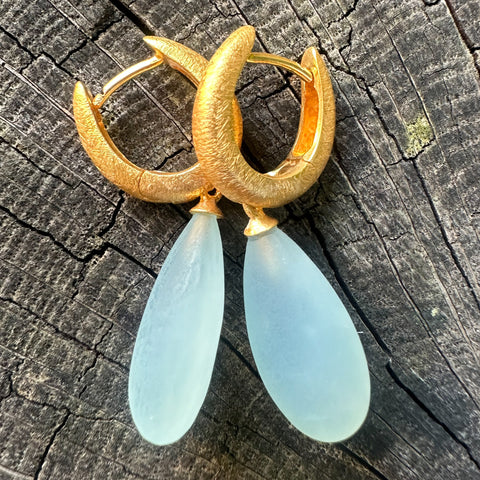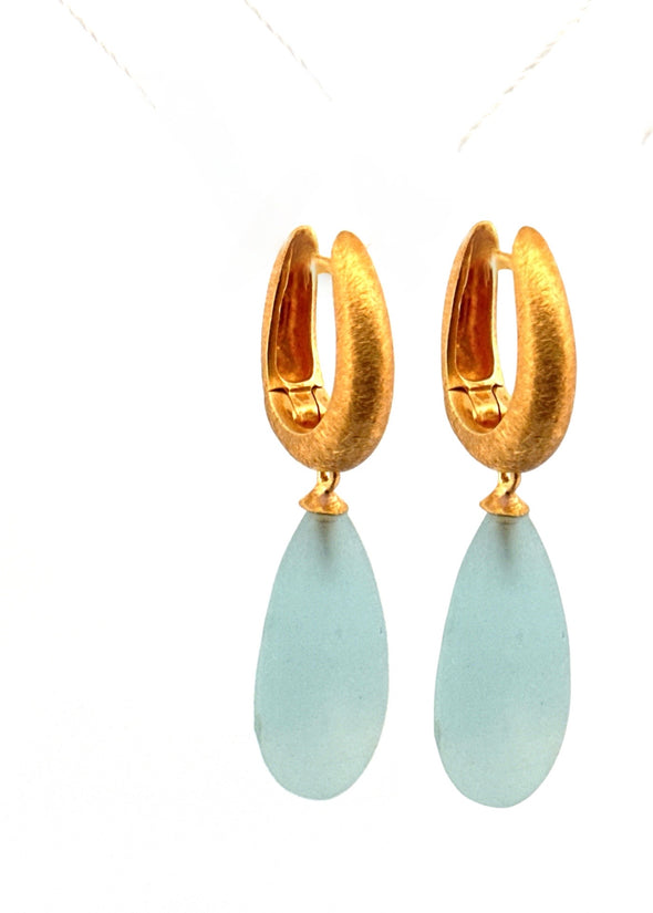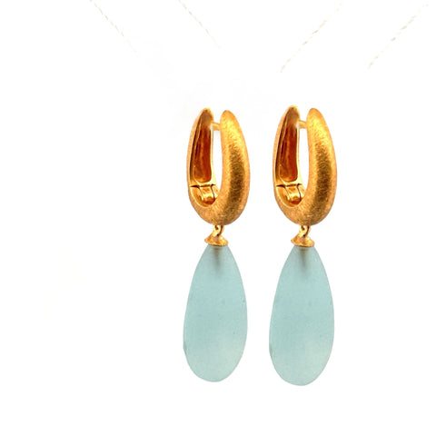 Steine: Aquamarin, matt, Tropfenform, ca. 10 × 20 mm