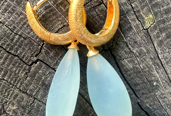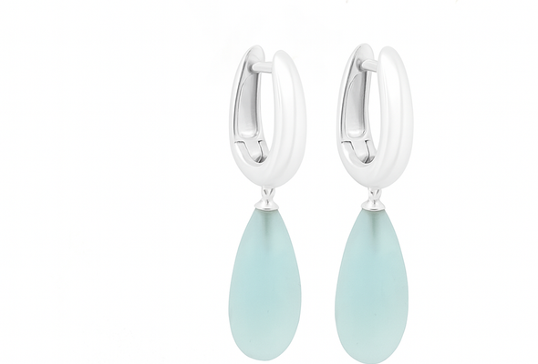 Diese stilvollen Creolen aus 925er Sterling Silber überzeugen durch ihr minimalistisches, zeitloses Design. Die konisch geformten Creolen (15 × 16 × 4,5 mm) tragen je einen tropfenförmigen Aquamarin mit matter Oberfläche (ca. 10 × 20 mm), der durch seine zarte, kühle Farbe Ruhe und Klarheit ausstrahlt.