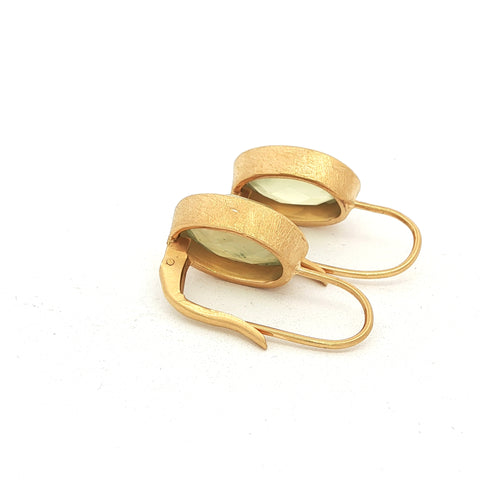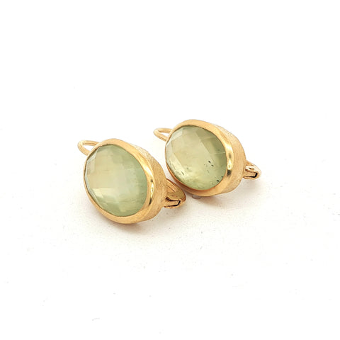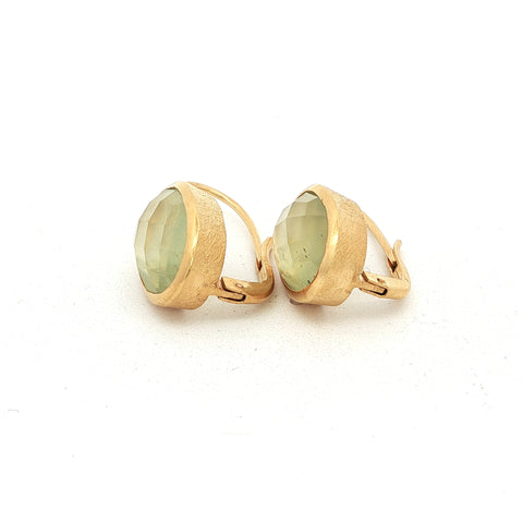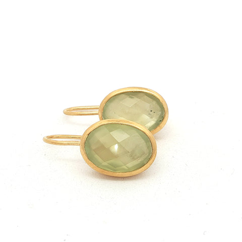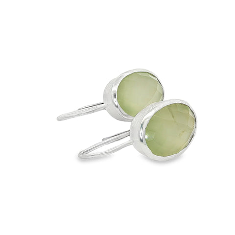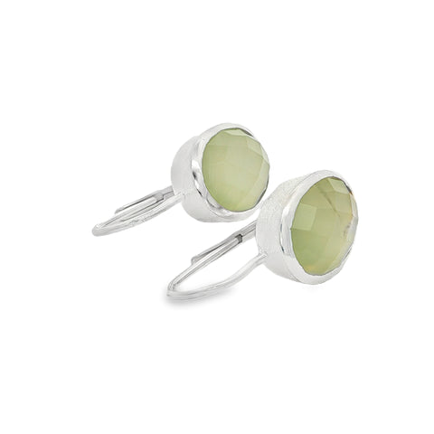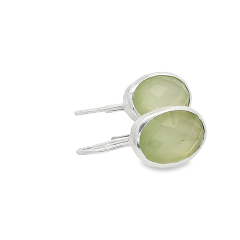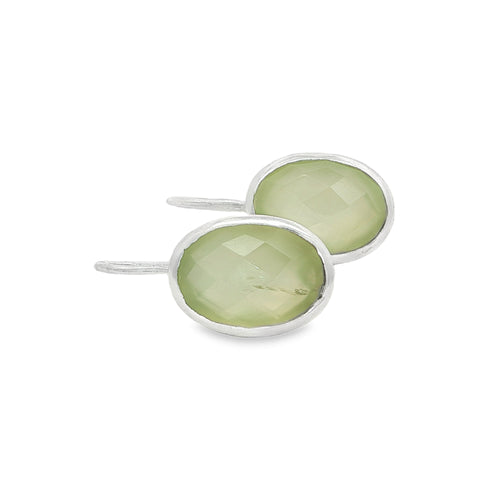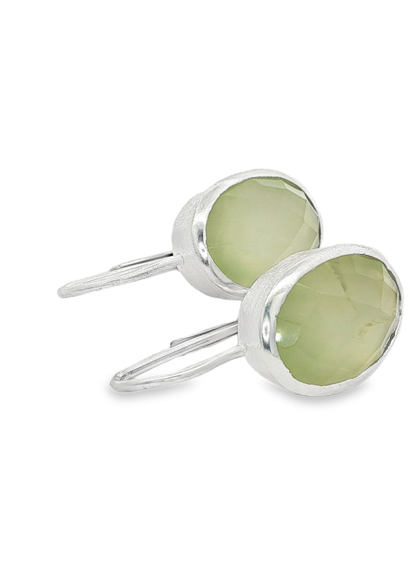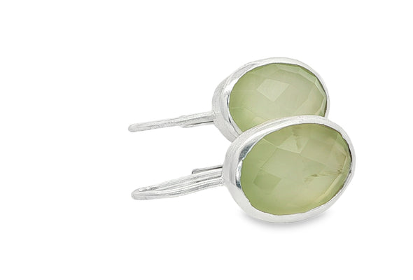 Ein stilvoller Ohrschmuck, der durch die klare Formensprache und die besondere Ausstrahlung des Prehnits zeitlose Schönheit und Leichtigkeit verkörpert.