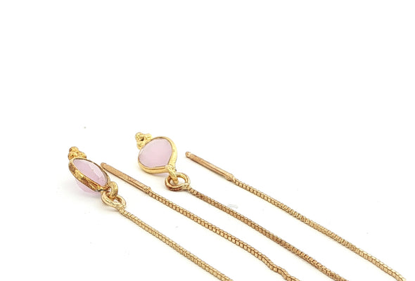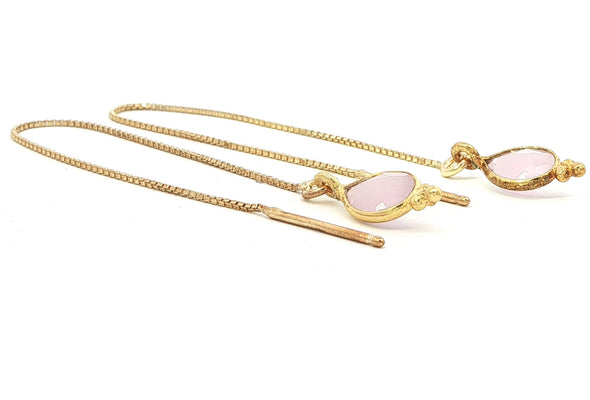 Lange Ohrhänger mit rosa Chalzedon – 925 Silber vergoldet, handgearbeitet
