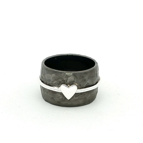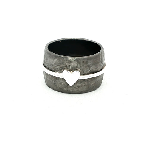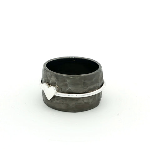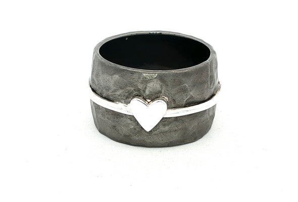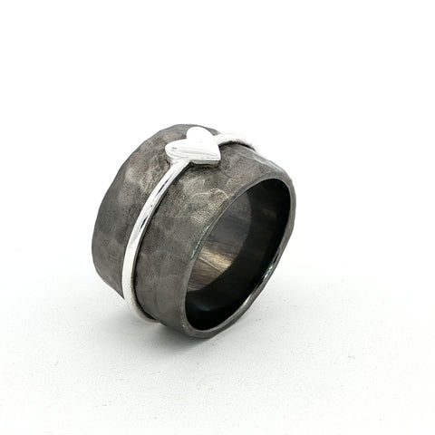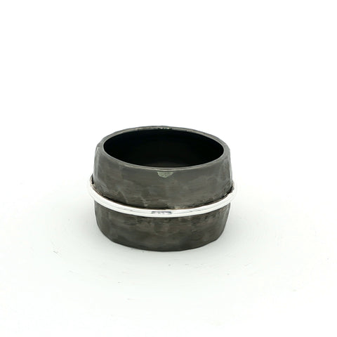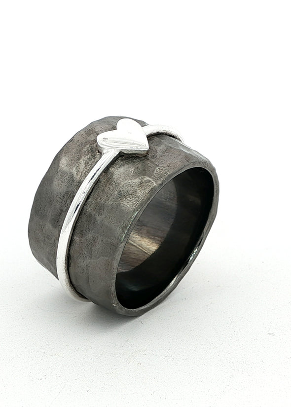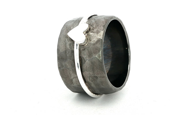 Der Hauptteil des Rings ist 14mm breit und hat eine matte, gehämmerte Oberfläche, die dem Ring einen rustikalen und dennoch eleganten Look verleiht. I