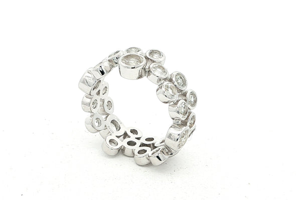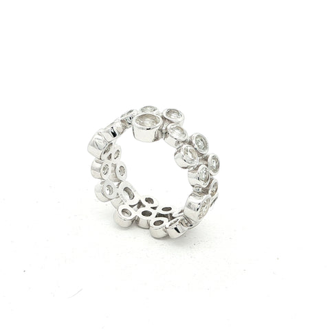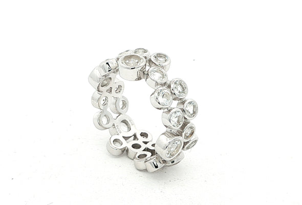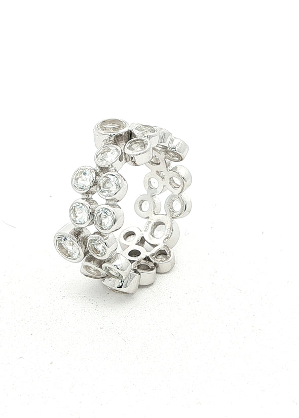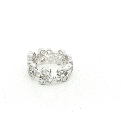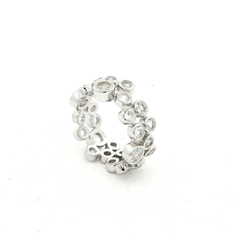 Der Memory Ring AURELIA ist ein elegantes Schmuckstück voller Symbolkraft. Gefertigt aus feinem Sterling-Silber, ist er rundum mit weissen Topasen in 3 mm und 4 mm Durchmesser besetzt, Ringbreite ist somit ca. 7 mm