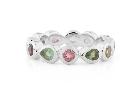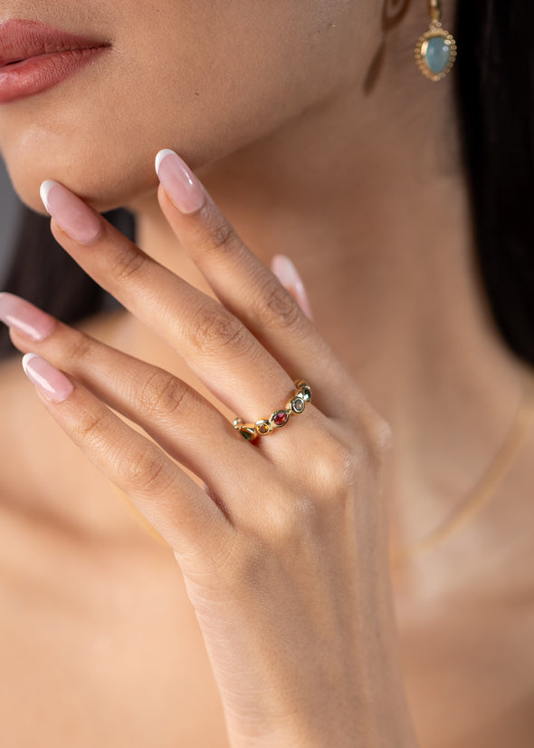 Die lebhaften Farben der Turmaline - von leuchtendem Grün über tiefes Blau bis hin zu strahlendem Rosa - erinnern an die Vielfalt und Schönheit der Natur. Jeder Tropfen, sorgfältig gefasst in den Ring BECCA, trägt seine eigene einzigartige Geschichte und Energie.