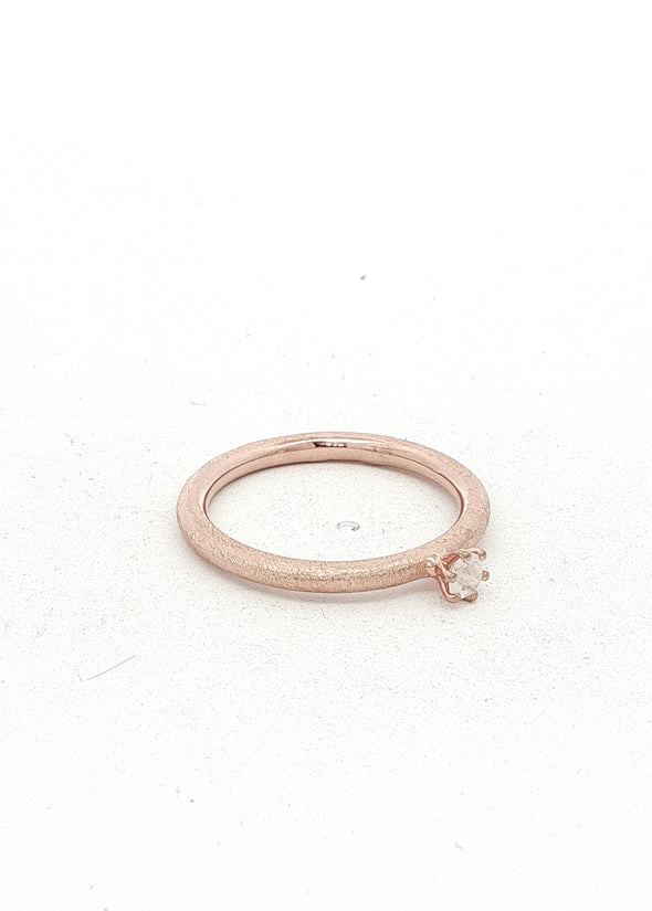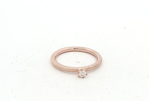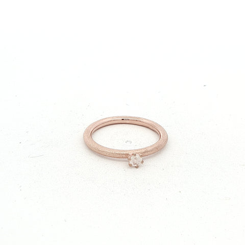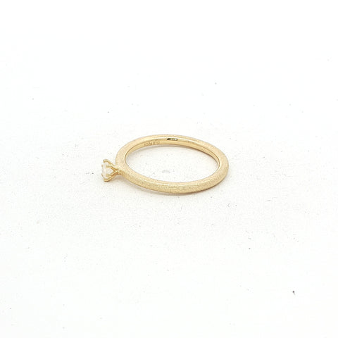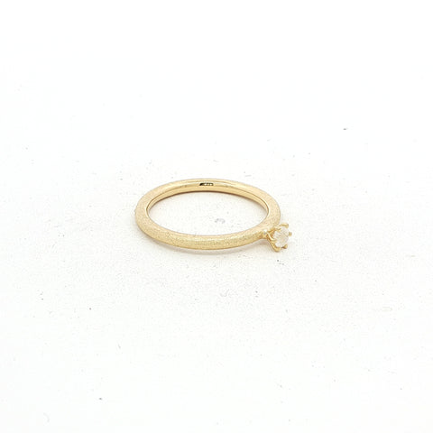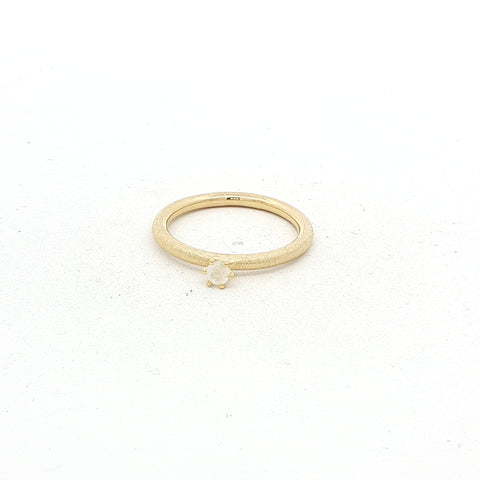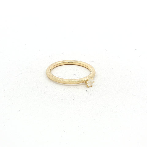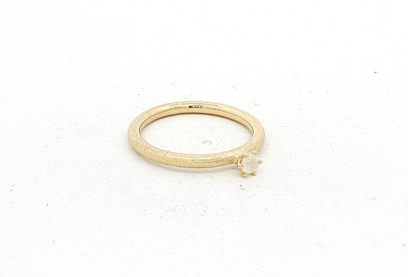 Der Ring MOONEL überzeugt mit seiner feinen, 2 mm starken Ringschiene im pneuförmigen, rund gewölbten Profil – minimalistisch und doch besonders. Eingefasst ist ein 3 mm grosser, facettierter Regenbogen Mondstein, der bei jedem Lichteinfall dezent leicht blau schimmert.